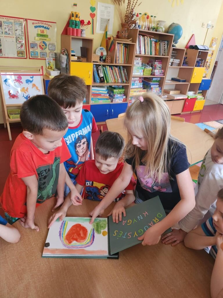 Džiaugiamės ir didžiuojamės savo mažaisiais kūrėjais, jų nuoširdumu ir gebėjimu per spalvas bei formas pasakyti tai, ką kartais sunku išreikšti žodžiais. „Draugystės knyga“ – tai dovana, kurią jie padovanojo vieni kitiems ir visam darželiui.