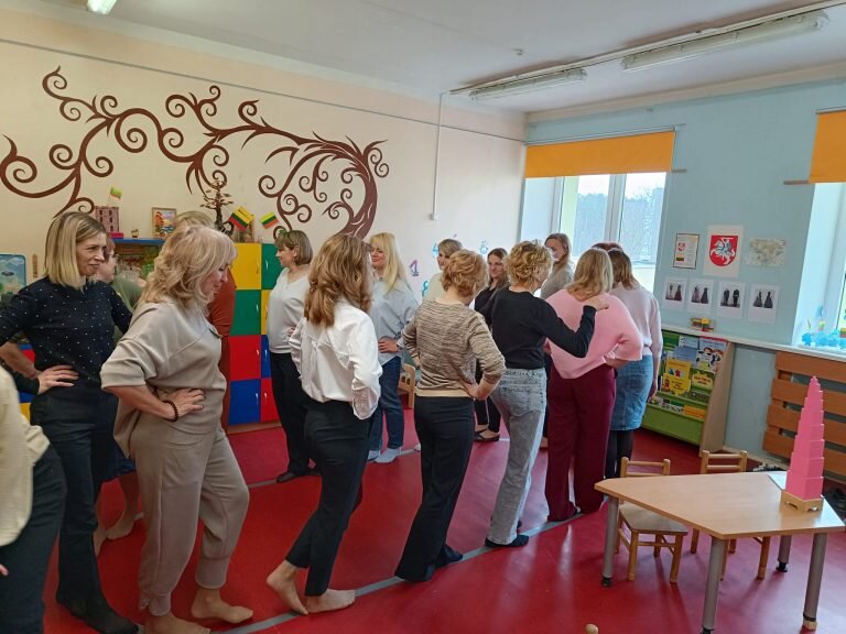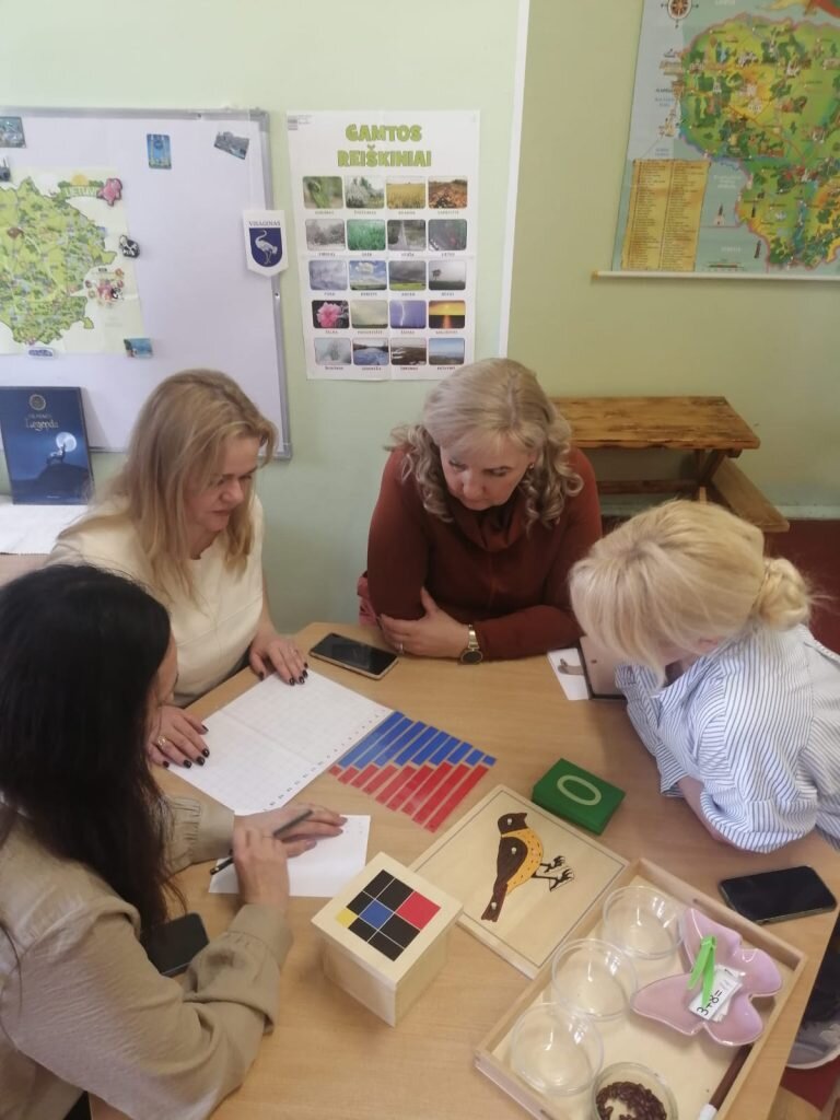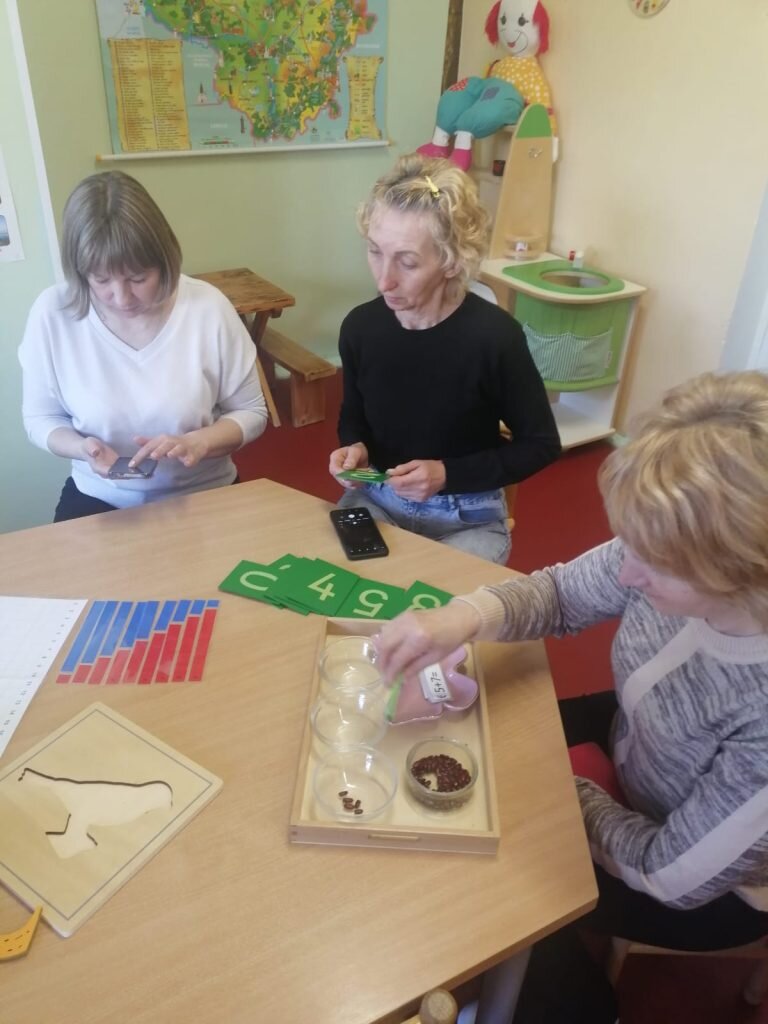 Po teorinės dalies vyko praktiniai užsiėmimai, kuriuose dalyvavo mūsų partneriai. Jie turėjo galimybę patys išbandyti Montessori metodiką – dirbti su ugdomąja medžiaga, pažinti jos paskirtį ir pajusti, kaip šis metodas veikia praktikoje. Tokia patirtis buvo vertinga ir įkvepianti visiems dalyviams.