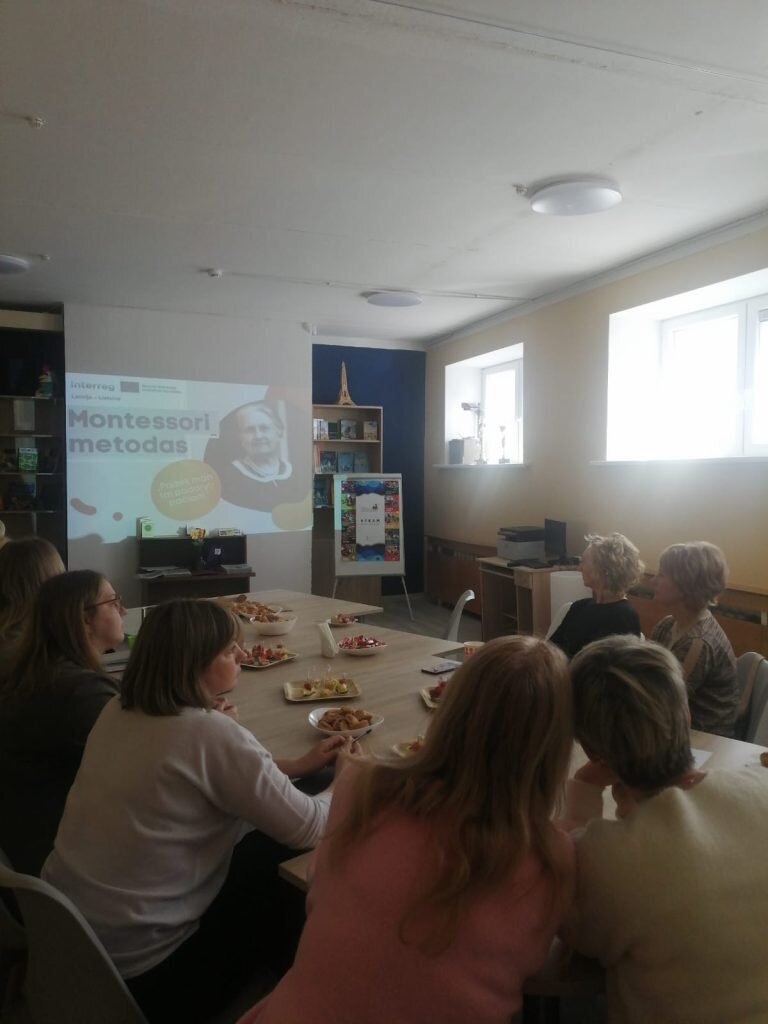 Renginio metu mūsų pedagogės T. Skutkevič ir A. Reginevič pristatė Montessori ugdymo metodą, plačiai naudojamą mūsų darželyje. Jos išsamiai papasakojo apie šio metodo principus, kasdienį jo taikymą bei teigiamą poveikį vaikų savarankiškumui, motyvacijai ir bendram vystymuisi. Taip pat pedagogės pasidalijo savo asmenine patirtimi, įgyta dalyvaujant praktiniuose mokymuose pagal Montessori metodą. Ši praktika leido joms giliau suprasti metodo esmę ir dar efektyviau jį taikyti kasdienėje veikloje.