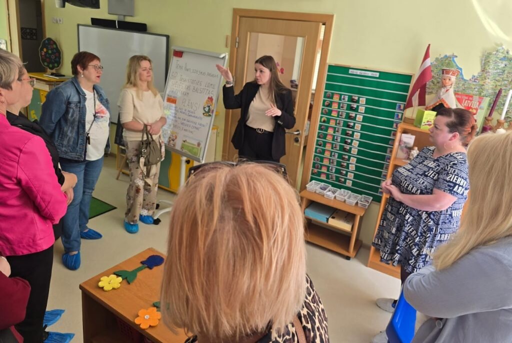 Buvo aplankytas ir pavaldus Daugpilio Stropų pagrindiniai mokyklai darželis. Pavaduotoja ugdymui Zana Navicka papasakojo apie centro ikimokyklinio ugdymo programos įgyvendinimo ypatumus bei pasidalino gerosios praktikos pavyzdžiais. Buvo apžiūrėtos darželio erdvės, grupės pedagogai ir specialistai demonstravo mokymo priemones, dalijosi patirtimi.