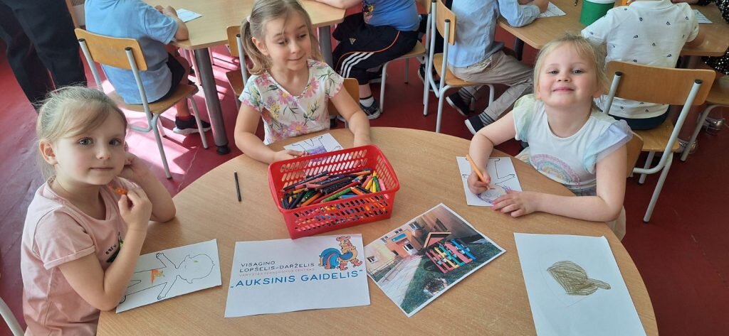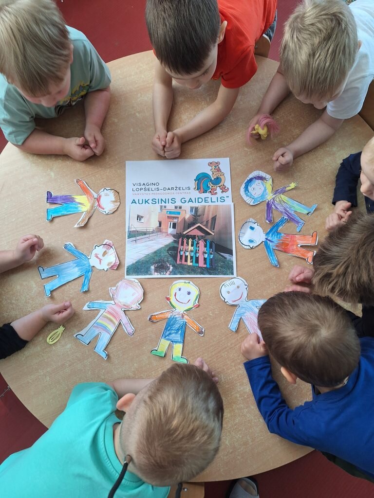 Vaikai su džiaugsmu dalyvavo kūrybinėje veikloje – jie spalvino spalvingas žmogeliukų figūrėles, kurios simbolizavo kiekvieną darželio bendruomenės narį. Piešdami ir spalvindami, mažieji kalbėjosi su auklėtojomis apie tai, ką jiems reiškia darželis, ką jie labiausiai