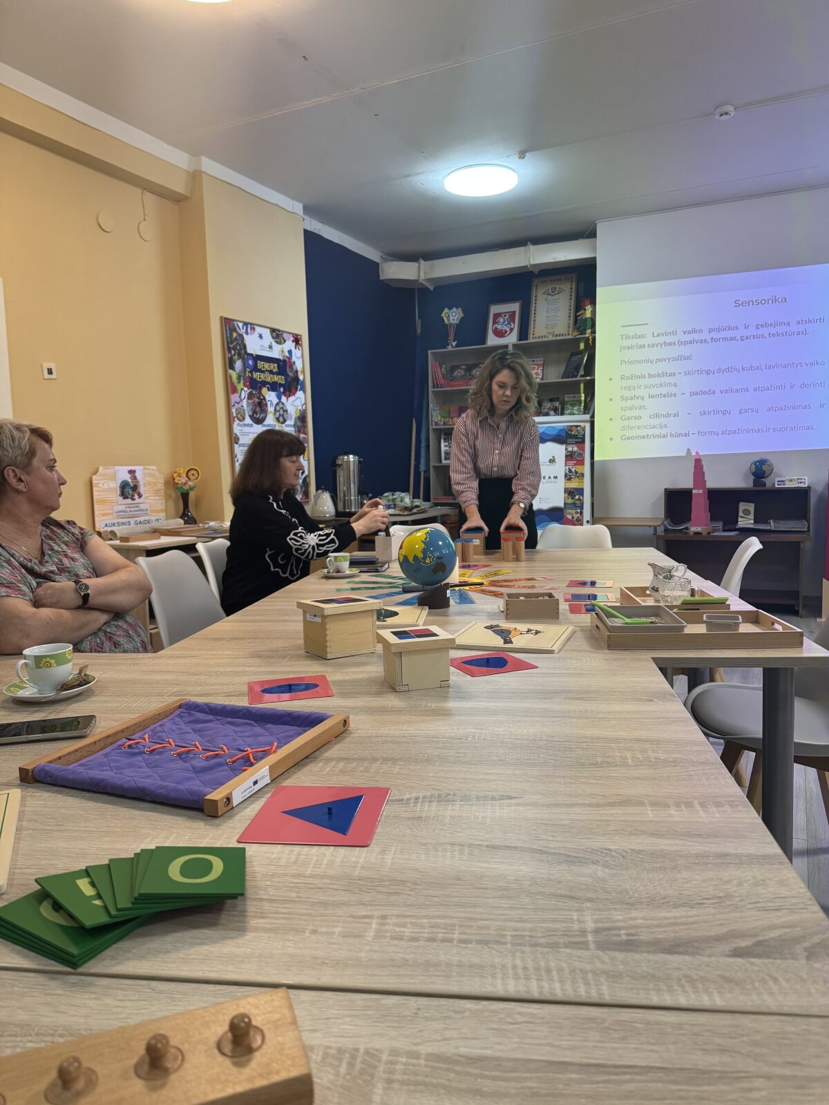Renginio metu pedagogai išbandė Montessori priemones – sensorinius rėmelius, skaičių lenteles ir rūšiavimo užduotis. Šios priemonės lavina vaikų pojūčius, smulkiąją motoriką, koncentraciją bei loginį mąstymą. Diskusijose buvo aptarta, kaip Montessori idėjas galima sėkmingai integruoti į tradicinį ugdymo procesą, pritaikant jas skirtingo amžiaus grupėms.