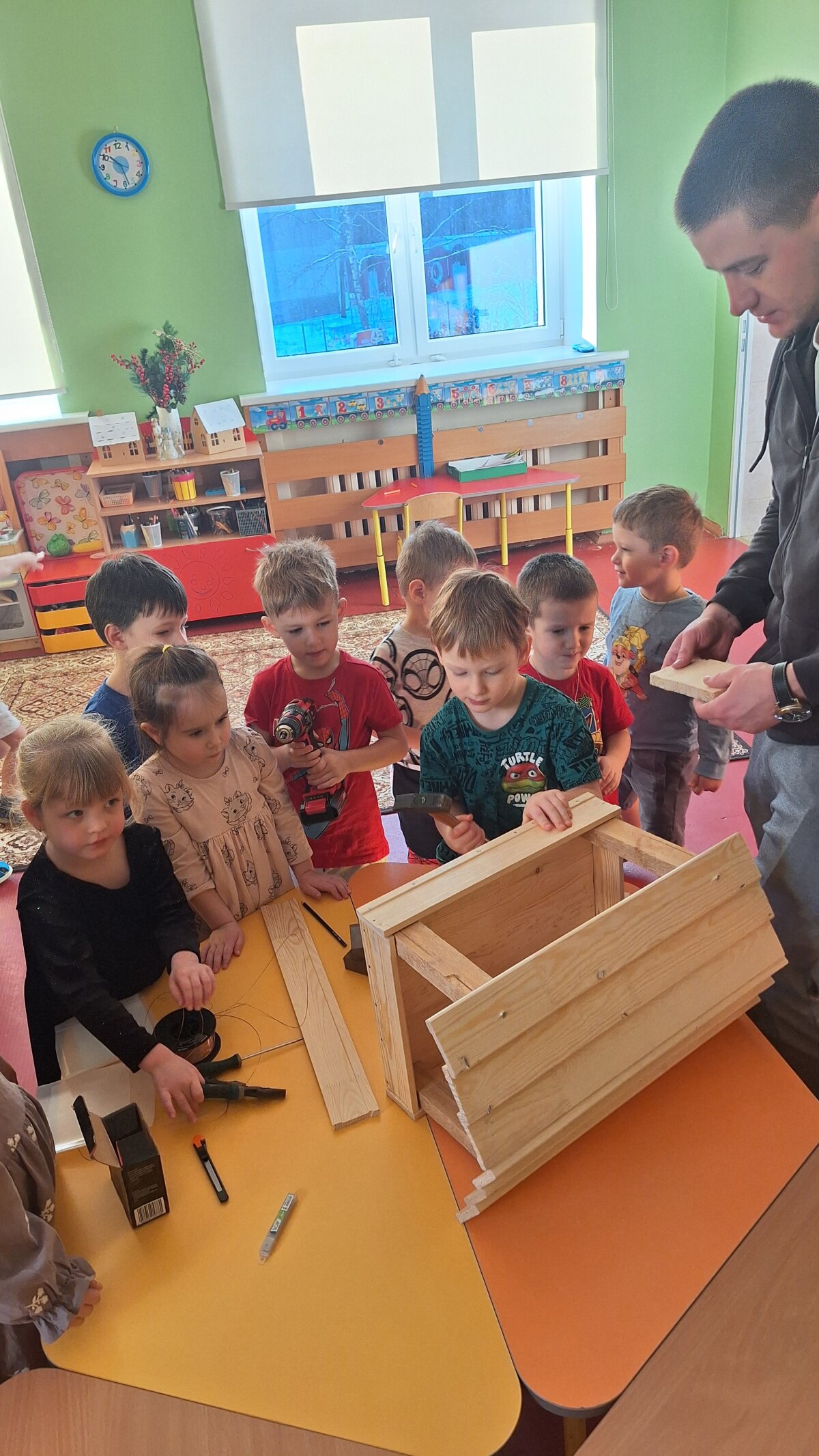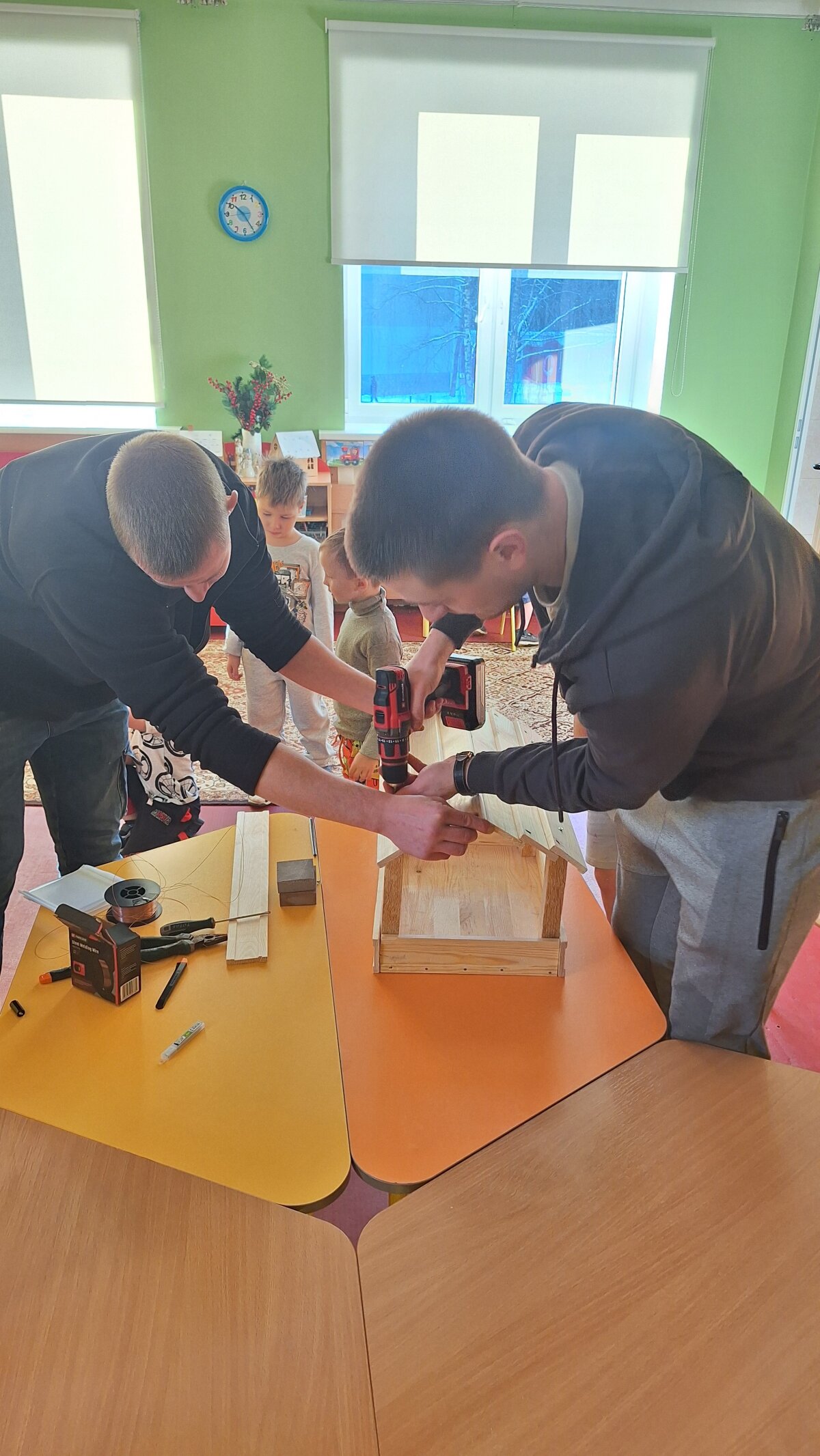 2026 m. sausio 15 d. ikimokyklinio ugdymo grupėje "Pieštukai" įvyko ypatinga meistriškumo pamoka – grupės vaikučių tėčiai kartu su vaikais kūrė lesyklėles paukščiams. Tai buvo ne tik kūrybinė veikla, bet ir tikra gerumo pamoka.