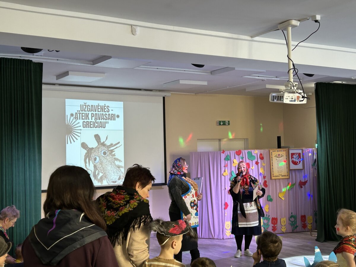 Lopšelyje-darželyje nuo pat ryto jau vyko linksmas šurmulys. Vaikai su grupės mokytojomis persirenginėjo, puošėsi pačių pagamintomis kaukėmis, nes vasario 17 d. darželyje šventėme Užgavėnes!!! Nuo seno ši šventė švenčiama linksmai ir triukšmingai. Todėl ir pas mus šurmuliavo didelis būrys persirengėlių, buvo žaidžiami liaudies žaidimai, vaikai šoko ir dainavo. „Žiema, žiema bėk iš kiemo“- aidėjo per visą darželį!!! Pasilinksminę, patriukšmavę ir išvarę žiemą iš kiemo, vaikai ėjo į grupes valgyti blynų, nes sakoma, jei per Užgavėnes gerai pavalgysi, per visus metus būsi sotus ir stiprus.